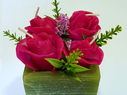 Kit 3 Velas Em Formato De Rosas Com Vasinho -vela Decorativa