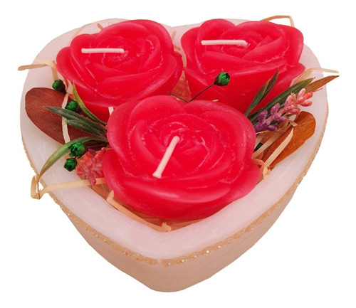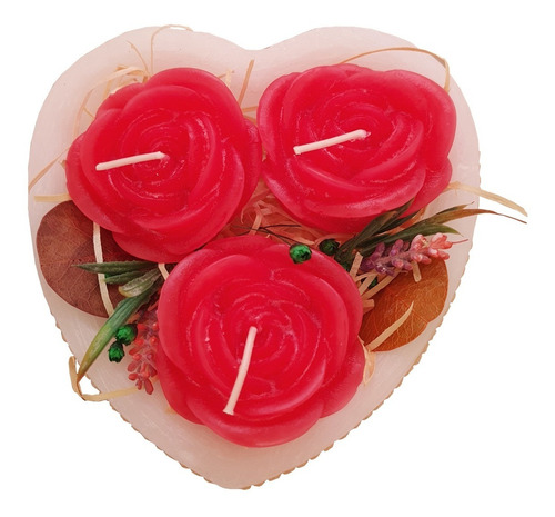 Coração Com Velas De Rosa Decorativa Artesanal Para Ambiente